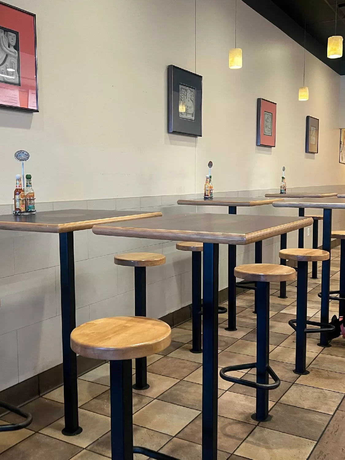 QDoba Mexican Restaurant. Super fresh. Great food. Best in Braintree and South Shore! Parking: Two spots right in front. more down at Ben and Jerrys. Entrance: Double doors open out. Open in summer. Slightly difficult to open. Seating: Accessible tables are in main dining room. High tops near counter. Interior: Adequate to tight inside in most spots. Counter: At chest level. Very accessible. Restroom: Opens in. Narrow. Spacious stall but very difficult to lock. Fully accessible restroom amenities. Where To Wheel Accessibility RatingOverall Rating: (3.6)