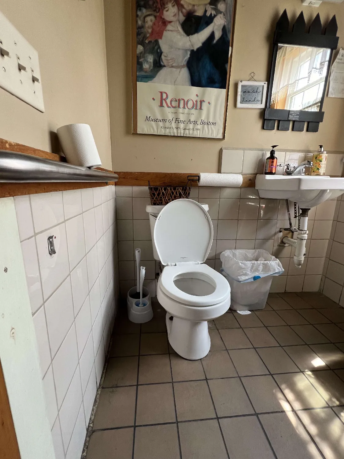 Parking: HC spots directly in front. Ramp: Long medium steep ramp leads up to front. Entrance: Manual single door entrance. Small lip. Opens out. Semi difficult. Interior: Adequate space thoughout restaurant and on patio. Seating: High Tops and several accessible tables inside. Only low accessible tables out on Patio. Restrooms: Stall door opens in. Stall had adequate space . Sink is eye level. Semi easy exit door. Staff is very accommodating. Great on Patio when weather is good. Where To Wheel Accessibility RatingOverall Rating: (3.4)